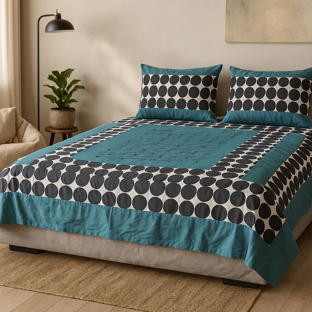 Add elegance to your bedroom with our Patchwork Bedsheet, featuring intricate embroidery at the center. Crafted for comfort and style
